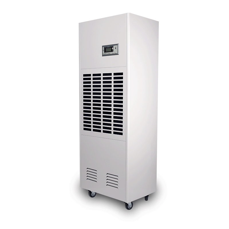 工業除濕機由壓縮機、交換器、風機、盛水器、機殼及控製器等組成,其工作原理是:由風扇將潮濕空氣抽入機內,通過熱交換器,此時空氣中的水份冷凝成水珠,變成幹燥的空氣排出機外,如此循環使室內濕度降低。