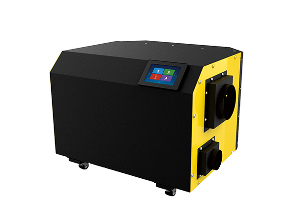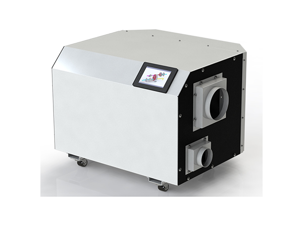 在再生過程中,再生空氣經過加熱後(120℃左右),進入轉輪再生區扇麵,在高溫狀態下,轉輪中的水分子被脫附,散失到再生 空氣中。再生空氣由於在脫附過程中損失了熱量,自身溫度降低,變成了含濕量很大的濕空氣 ,由再生風機排至室外。除濕和再生同時進行,待處理空氣不斷除濕,轉輪不斷再生,對空氣進行連續除濕。